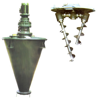 该机自转均有一套电机及摆线针轮减速机来完成,采用两螺杆非对称搅拌,使物料搅拌范围大,混合速度快,对比重悬殊,混配比较大的物料混合更为适合。