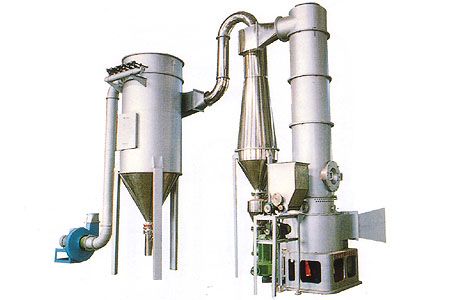 ¡öWith a certain spouted speed, hot-air enters into mixing-grinding dry room from the bottom of drier by inlet pipe. To the materials, a strong wind shear, wind float and spin are forced. So that, the materials turn to be micronized by centrifugal, cutting, collision, friction to strengthen the mass and heat transfer. At the bottom of drier, the larger and wetter cluster of grains are shattered under the action of blender, but the less wet and smaller grains will be carried up by swirling eddy and to be further dried. Because of the rotation flow of gas and solid two phases, and solid-phase has the larger inertia than gas-pahse, the relative speed of them is much larger to strengthen the mass and heat transfer between each other. Therefore the drier has the strong production intensity.